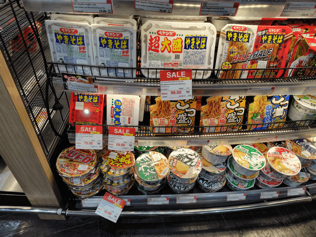 なお、マックスバリューとか行くと、どん兵衛や、ペヤング、カップヌードル辺りも普通に置いてありました。