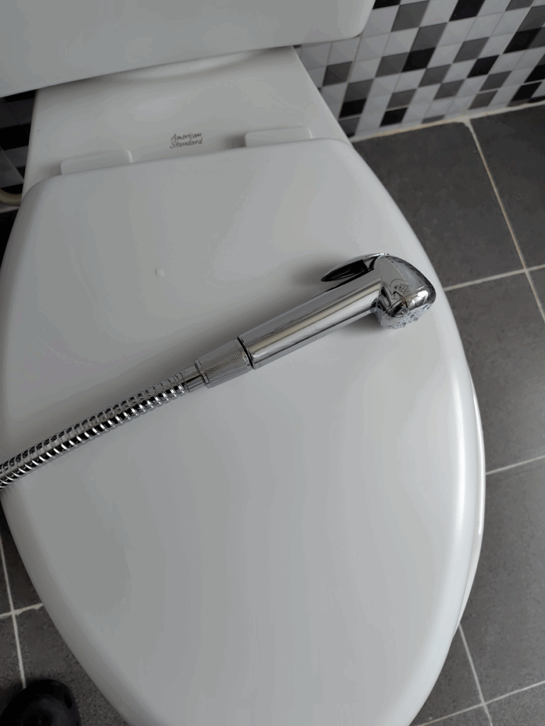 また、使い方にクセがあり、ウォシュレットの代わりに小さめのシャワーみたいなのがトイレに置いてあって、それで流してから拭く感じなっているんですよね。